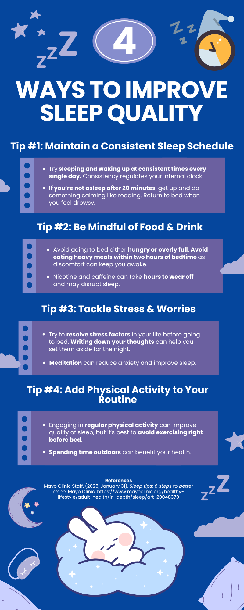 Looking for ways to improve your sleep quality? Check out the tips in the infographic below!